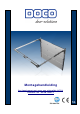 262626 Handleiding Vanaf dagmaat breedte breedte > 3000 Bij dagmaat breedte > 3000 dienen er een extra lagerplaten (13023+24605) en een koppeling (25042 of 25034) gemonteerd te worden, inclusief afhanging naar plafond. Zie detail D Alle onderdelen worden bevestigd met 14023 bouten en 14022 moeren. NL V2.2 14 www.doco-international.
