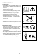 Method of operation 㪄㩷 Always use two hands to grip each handles during operation. 㪄㩷 Use the Hedge Trimmer only in good light and visibility. During cold seasons beware of slippery or wet areas, ice and snow (risk of slipping). Always ensure a safe footing. 㪄㩷 Never work on unsiable surfaces or steep terrain. 㪄㩷 Never stand on a ladder and run the Hedge Trimmer. 㪄㩷 Never climb up into trees to perform cutting operation with the Hedge Trimmer.
