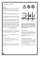 Working technique - - Work only in good lighting and visibility. Be especially careful on slippery and wet surfaces, ice, and snow (danger of slipping). Never work on an unstable surface. Pay attention to obstacles in the work area - risk of stumbling! Pay constant attention to good footing. - After use, clean the trimmer, in particular the cutter. Oil the cutter lightly and put on the blade guard. Emtpy the fual tank completely before long-term storage or shipping the trimmer.