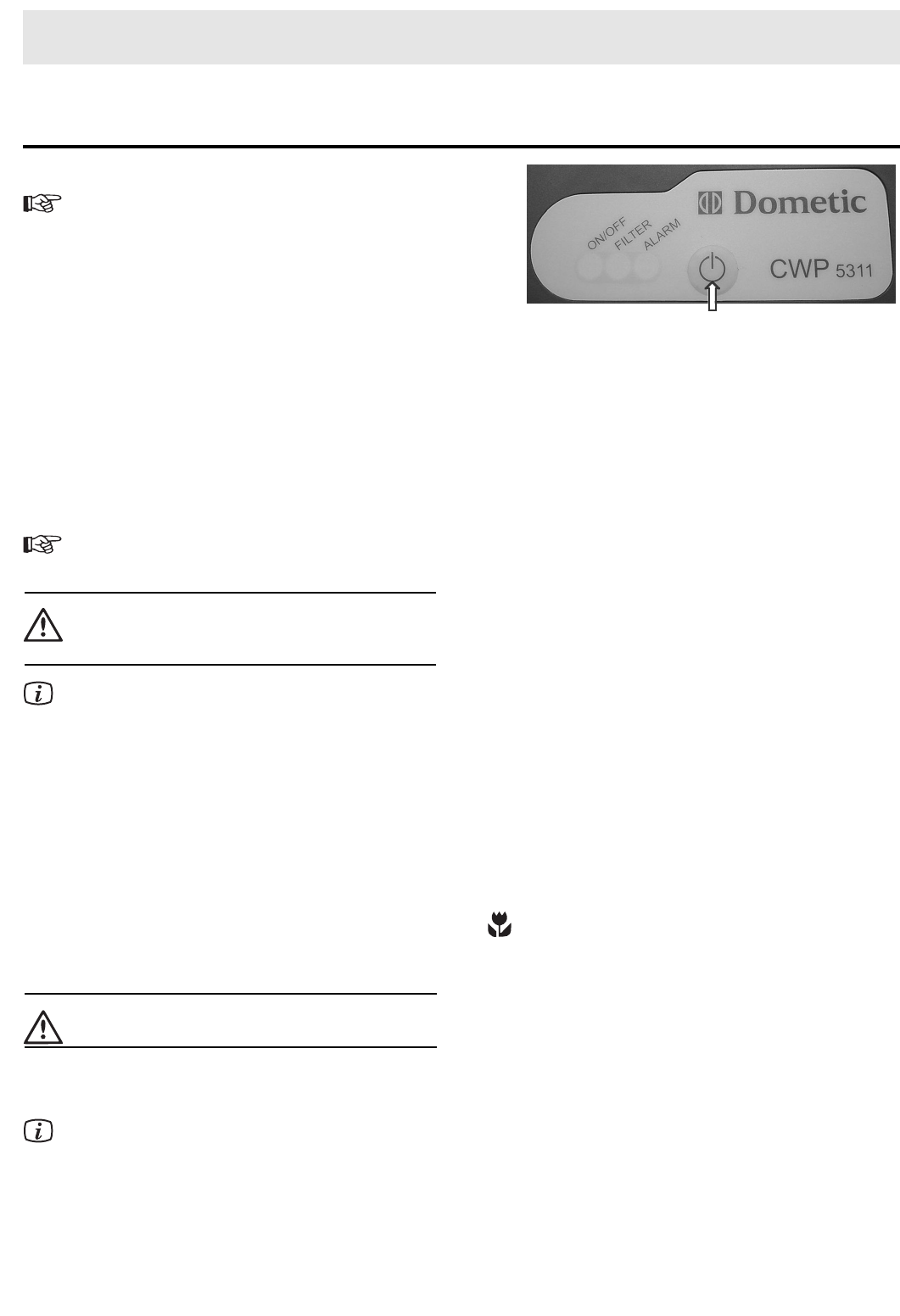 3. Starta vattenrenaren genom att trycka på ON/OFF,