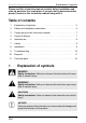 Dometic Harrier Inverter Explanation of symbols Please read this instruction manual carefully before installation and start-up, and store it in a safe place. If you pass on the device to another person, hand over this instruction manual along with it. Table of contents 1 Explanation of symbols . . . . . . . . . . . . . . . . . . . . . . . . . . . . . . . . . . . 3 2 Safety and installation instructions. . . . . . . . . . . . . . . . . . . . . . . . . . .