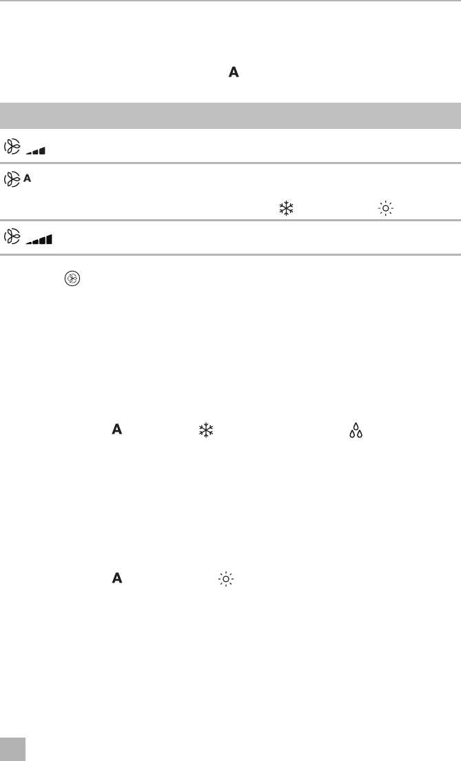 In all modes, except for the “Automatic”( ) mode, the fan speed can be selected