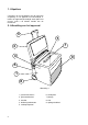 1. Uitpakken Controleer na het verwijderen van de kartonnen verpakking of het apparaat niet beschadigd is. Indien het apparaat beschadigd werd tijdens het vervoer, moet u dit meteen melden aan uw leverancier. 2. Afbeelding van het apparaat 3 5 7 2 4 9 6 1 8 Afbeelding 1. 1. geïsoleerd chassis 6. achterplaat 2. geïsoleerd deksel 7. ijsbakje 3. handvat 8. wiel 4. bedieningselementen 9. opbergvakdeksel 5.