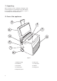 1. Unpacking After removal from the cardboard packaging, make sure the appliance is not damaged. If you find damage to the appliance resulting from transport, report it immediately to the transportation firm. 2. View of the appliance 3 5 7 2 4 9 6 1 8 Figure 1. 1. Insulated casing 6. Rear cover 2. Insulated lid 7. Ice-tray shelf 3. Pull handle 8. Wheels 4. Control panel 9. Storage net 5.