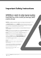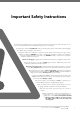 Important Safety Instructions The unit should be installed so that it is protected from the elements. It should not be exposed to water or rain. It is not to be immersed in water or sprayed directly by a hose or other device. The garage door must be well balanced. Sticking or binding doors must be repaired by a qualified garage door installer prior to installation of the opener. Frequently examine the installation, in particular cables, springs and mountings for signs of wear, damage or imbalance.