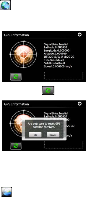 To reset the GPS satellite receiver, tap to prompt a dialog as below.