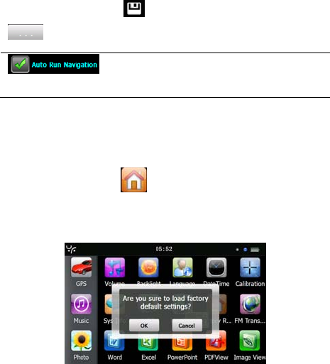 Tap 「OK」to restore the default setting or 「Cancel」to return to the setting