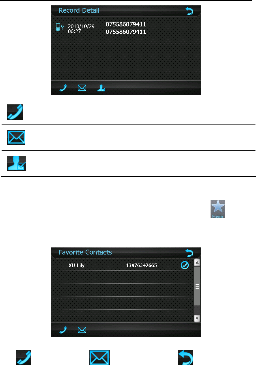 After adding contacts to favorite (refer to 4.3 Contacts), you may tap to view