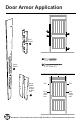 Aplicación Door Armor A B C Protector de puerta B C D Protector para jamba A E Tornillos de 2 ½” (4) Tornillos de 3 ½” (17) Hoja de la puerta Reborde Bisagra Protector de bisagras (No incluido en conjunto MINI) C Reborde Jamba del lado de la cerradura de la puerta Reborde Jamba del lado de las bisagras de la puerta ¿Preguntas? Llame al Departamento de Servicio al Cliente al 1-888-582-2294 o visite www.armorconcepts.
