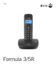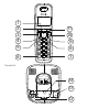 English 1. 2. 3. 4. 5. 6. 7. 8. 9. 10. 11. Up / missed call Left menu button/OK Talk button Down/Redial Redial * and keypad lock # and ring signal On / Off Phone book R Recall button (PBX features) End call and on / off button Right menu button/Back/Internal call Only for Formula 5r: 12. Paging 13. Answer machine functions. Detailed in Answer machine section. 14.