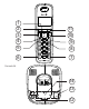 English 1. 2. 3. 4. 5. 6. 7. 8. 9. 10. 11. Up / missed call Left menu button/OK Talk button Down/Redial Speaker phone * and keypad lock # and ring signal On / Off Phone book R Recall button (PBX features) End call and on / off button Right menu button/Back/Internal call Only for Formula 8r: 12. Paging 13. Answer machine functions. Detailed in Answer machine section. 14.