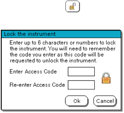 Enter the access code, confirm it, and press Ok. The instrument returns
