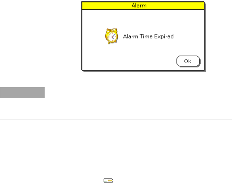 When the Timer Alarm duration elapses, an Alarm screen displays to
