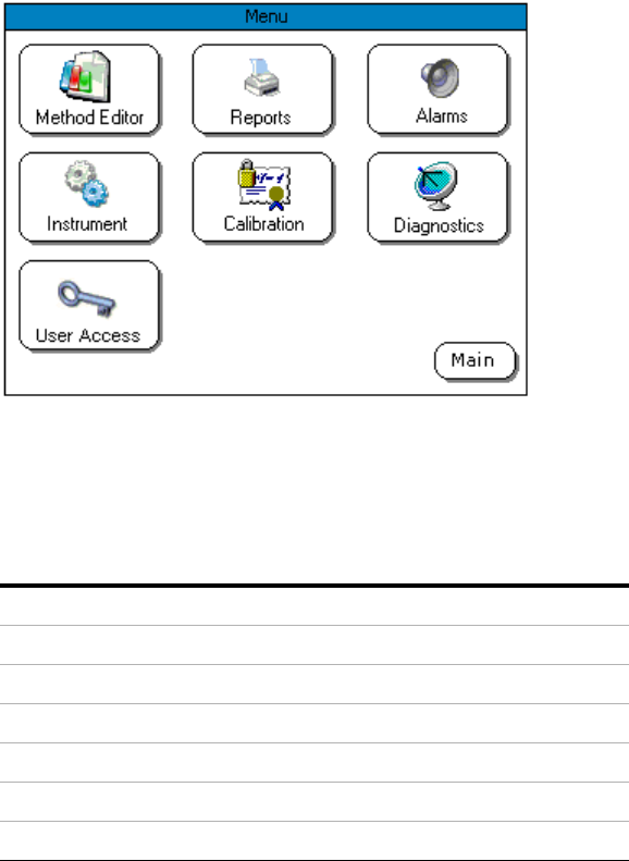 (Method Editor, Reports, Alarms, Instrument, Calibration, and