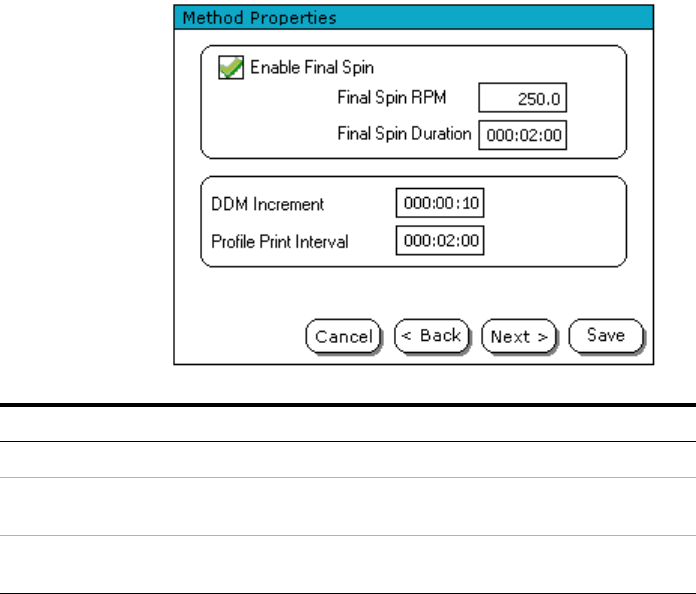Final Spin RPM Allows for spindle rotation at a speed different from the previous