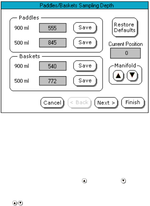 From the Paddles/Baskets Sampling Depth screen: