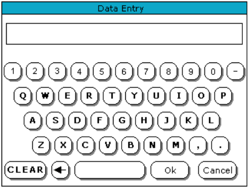 The Data Entry screen acts as on-screen keyboard for the instrument.