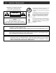 Caution Statements WARNING: TO PREVENT FIRE OR ELECTRICAL SHOCK DO NOT EXPOSE TO RAIN OR MOISTURE A product and cart combination should be moved with care. Quick stops, excessive force and uneven surfaces may cause the product and cart combination to overturn.