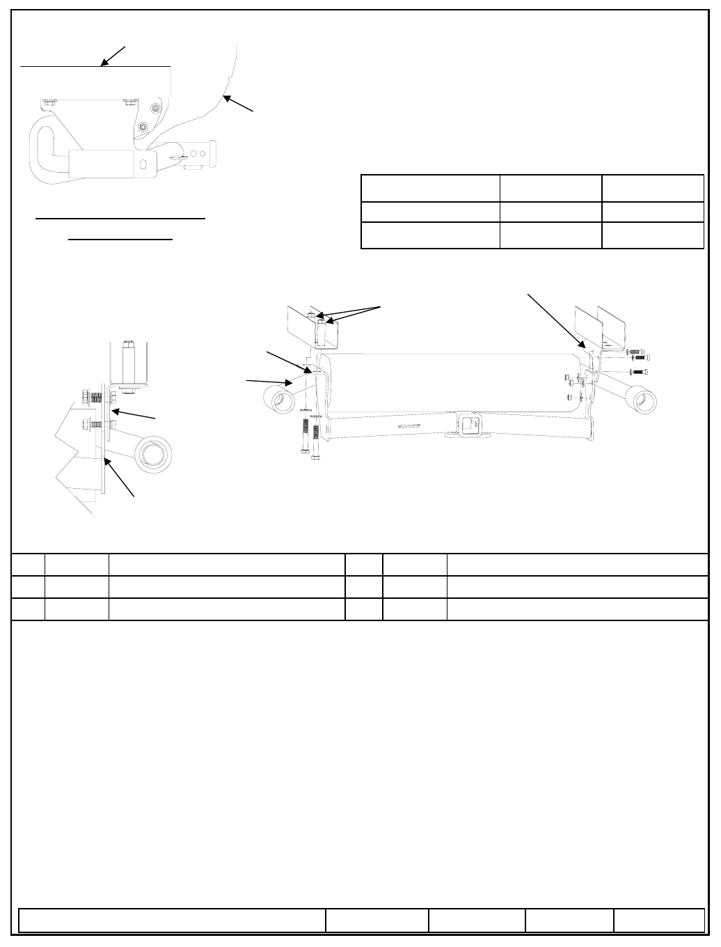 Apriete todos los tornillos 7/16-14 GR5 con una llave de torsión a 50 Lb.-pies.(68 N*M)