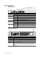 1.2.2 For Vigor2910G LED Explanation WAN ACT DMZ QoS Attack WLAN Printer W1 W2 / P1 LAN P2 P3 P4 LED Status Explanation ACT (Activity) Blinking Off On On Off On Blinking On Blinking Off On Orange Green Blinking Orange The router is powered on and running properly. The router is powered off. DMZ Host is specified in certain site. The QoS function is active. The QoS function is inactive. DoS Defense function is active. An attack is detected. Wireless access point is ready.