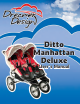 Ditto Manhattan Deluxe Frame Features: Front Swivel Wheel With Stationary Lockout: Your stroller is equipped with a lever that allows your front wheels to swivel or stay in a locked position. This lever is located on the frame, between the seats on the back side. Stationary position: Lift lever and release, then swivel the front wheels to the underside of the footplate until they locks into place. Swivel position: Squeeze the lever toward the frame and psh the spring button in until locked.