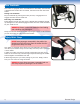 Maintenance: We recommend that you have an experienced dealer perform these maintenance checks at least once a year. Lubrication of the following items is necessary: Front wheel axle Check fabric seams and straps for fraying and tearing. Keep it out of the sun, and in a dry place when not in Quick release lever use, to prevent fading and mildew. Insert in frame for rear wheels Check the frame for loose rivets, cracks, and wear.