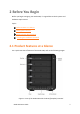 1 Drobo 5D3 User Guide ....................................................................................................... 6 2 Before You Begin................................................................................................................ 7 2.1 Product Features at a Glance ..................................................................................... 7 2.2 Checking Box Contents ..............................................................................................