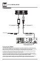 HDM90 INSTALLATION Installation BLACK 1m Antenna Extension (included with HDM90) BLUE 1m Male-to-Male Cable (included with HDM90) Vehicle antenna BLUE 10-pin Female Mini-DIN (HDM90 Head Unit Connection) FRONT R/SUB L-CH R-CH REMOTE IN Head unit antenna connector is not used when HDM90 is connected Connecting the HDM90: • With the arrow facing up, line up and connect one end of the included blue mini-DIN cable to the connector labeled "HEAD UNIT" on the HDM90.