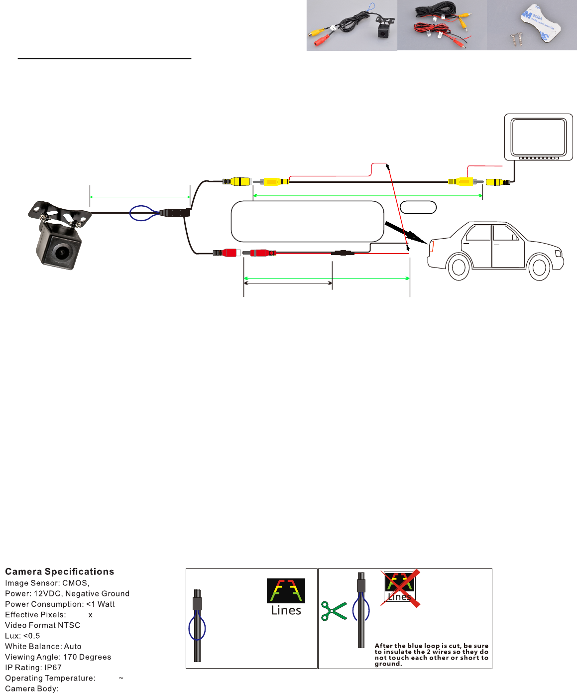 camera and connect the other end of the yellow RCA cable to the video source (receiver/monitor).
