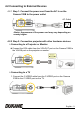 4.2 Connecting to External Devices 4.2.1 Step 1: Connect the power cord from the AC In on the Camera 335B to the power outlet AC Outlet : Appearance of the power cord may vary depending on country/region. 4.2.2 Step 2: Connection projector with other hardware devices ¾ Connecting to a Projector or Monitor z Connect the VGA cable from the VGA OUT port on the Camera 335B to the VGA IN port on the projector or monitor. ¾ Connecting to a TV 1.