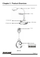 Chapter 1 Precautions Always follow these safety instructions when setting up and using the Document Camera: 1. Please do not tilt the machine while using. 2. Do not place the Document Camera on an unstable trolley, stand or table. 3. Do not use the Document Camera near water or source of heat. 4. Use attachments only as recommended. 5. Use the type of power source indicated on the Document Camera.