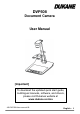 DVP508 Document Camera User Manual [Important] To download the updated quick start guide, multilingual manuals, software, and drivers, please visit Dukanes website at www.dukane.