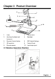 Chapter 1 Precautions Always follow these safety instructions when setting up and using the Document Camera: 1. Do not place Document Camera in tilted position. 2. Do not place the Document Camera on an unstable trolley, stand or table. 3. Do not use the Document Camera near water or source of heat. 4. Use attachments only as recommended. 5. Use the type of power source indicated on the Document Camera.