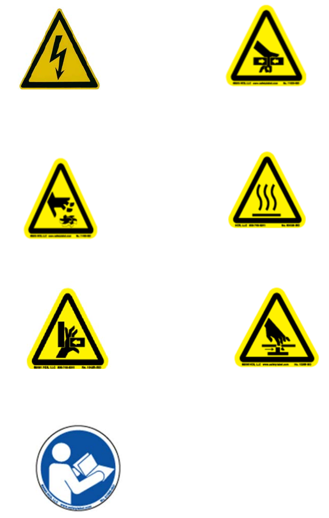 These symbols are used on the machine to indicate points or instances of specific danger to operating