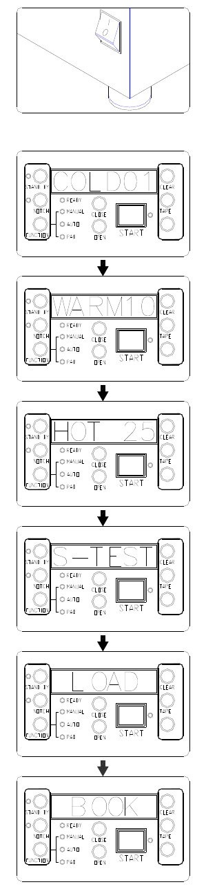 heating process ( COLD, WARM, or HOT ).The 2 rightmost spaces of LED: The elapsed