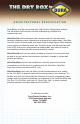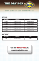 PA R T N U M B E R S A N D D E S C R I P T I O N S DRY BOX Part Number Dimension Color 120-DB-2 12"W X 17"L X 12"H Black Body Green Lid 121-DB-2 12"W X 17"L X 12"H Green Body Green Lid 122-DB-2 12"W X 17"L X 12"H Tan Body Tan Lid 123-DB-2 12"W X 17"L X 12"H Purple Body Purple Lid 124-DB-2 12"W X 17"L X 12"H Black Body Black Lid 125-DB-2 12"W X 17"L X 12"H Grey Body Grey Lid Part Number Dimension Color 12DS 15.75"W X 21.75"L Black DIRT SKIRT See Our IMPACT Video at www.