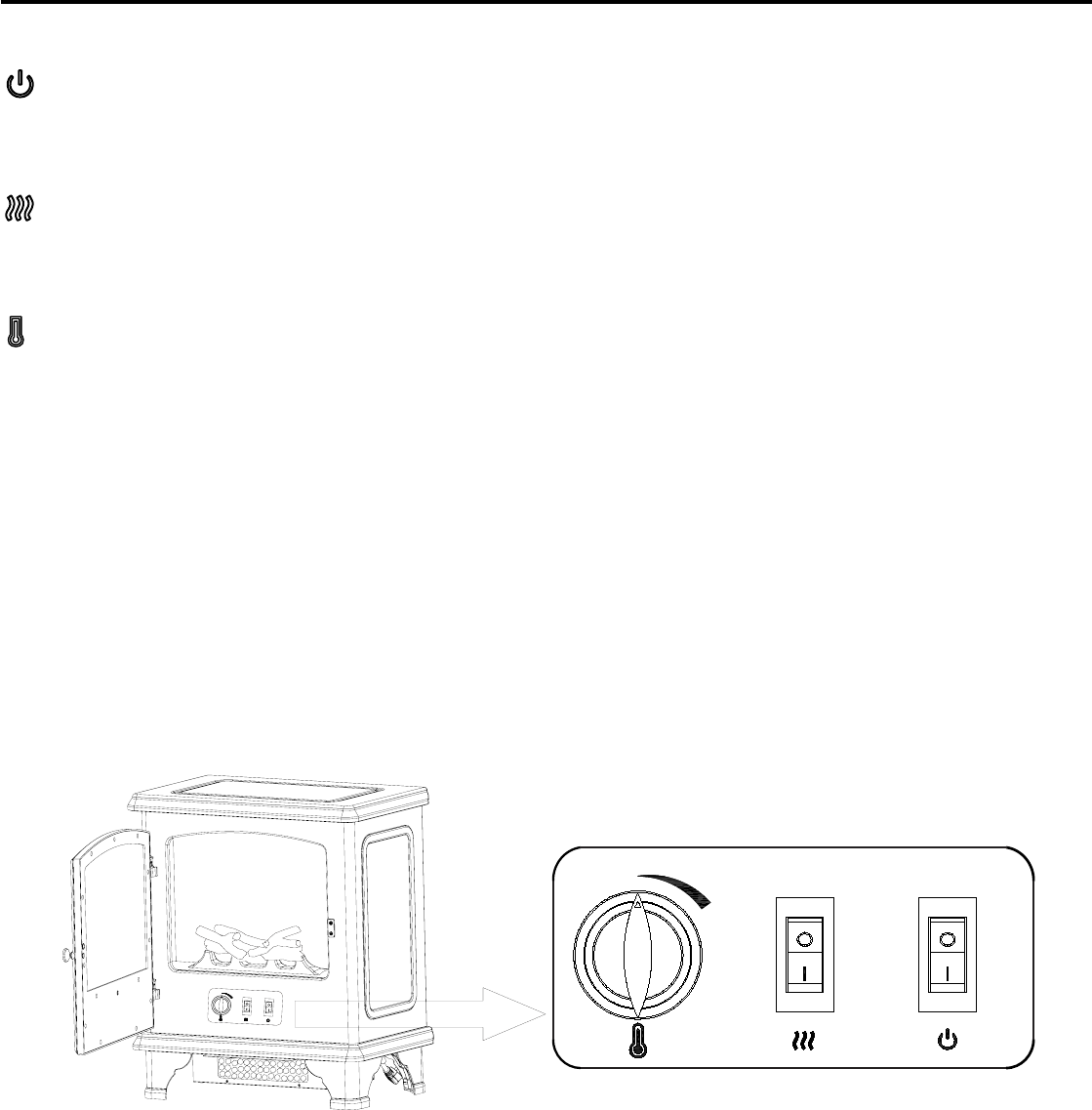 La chimenea consiste en un calentador tipo elemento de alambre con ventilador. El interruptor HEATER