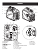 FEATURES E A F G B C H D I J K L M N T O FF RUN S O P CH OKE Q R A - Spark Plug Cover B - Spark Arrestor D - Outer Casing (Side Panel) E - Handle (Grip) F - Air Vent G - Fuel Cap H - Recoil Starter I - Control Panel J - Oil Warning Light K - Overload Indicator Light L - AC Pilot Light M - 3 in 1 Start Switch (RUN / OFF and Choke) N - Economy Switch O - U S B Outlet 1.5A 5V DC P -120V 13.
