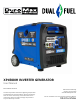 SPECIFICATIONS AC Rated Wattage (Gasoline) 3600W AC Rated Wattage (Propane) 3420W AC Surge Wattage (Gasoline) 4500W AC Surge Wattage (Propane) 4275W AC Rated Voltage 120V AC Rated Frequency 60 Hz AC Phase Single DC Voltage 5V DC Amperage 3.1A Engine Type 4-Stroke OHV Forced-Air Ignition System Non-Contact Transistor Displacement 223cc Starting Type Electric Fuel Tank Capacity 2.64 US Gal. (10L) Oil Capacity 20 fl. oz. (0.6L) Run Time @ 50% (Gasoline) 11 hr.