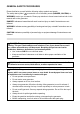 WARNING: This generator produces powerful voltage, which can result in electrocution. • ALWAYS ground the generator before using it (see the "Grounding the Generator" portion of the "PREPARING THE GENERATOR FOR USE" section). • Generator should only be plugged into electrical devices, either directly or with an extension cord. NEVER connect to a building electrical system without a qualified electrician. Such connections must comply with local electrical laws and codes.
