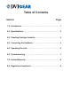Table of Contents Section Page 1.0 Introduction. . . . . . . . . . . . . . . . . . . . . . . . . . . . . . . . . . . . . . . 1 2.0 Specifications. . . . . . . . . . . . . . . . . . . . . . . . . . . . . . . . . . . . . 2 3.0 Checking Package Contents. . . . . . . . . . . . . . . . . . . . . . . . . 3 4.0 Connecting the Hardware . . . . . . . . . . . . . . . . . . . . . . . . . . . 3 5.0 Operating The Unit. . . . . . . . . . . . . . . . . . . . . . . . . . . . . . . . . 5 6.0 Troubleshooting. . . . .