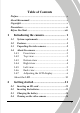 Table of Contents Preface ..............................................................................v About this manual.............................................................v Copyright...........................................................................v Precautions ......................................................................vi Before You Start .............................................................viii 1 Introducing the camera ............................. 1 1.1 1.2 1.