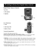 3.Getting Started Preparing Your Digital Video Camera ●Step 1 Insert four "AAA" batteries into the battery compartment . ●Step 2 When inserting an SD/MMC memory card, follow the icon shown in the compartment to orient the card. Push the memory card all the way into the memory slot to insert. Pushing the card in again gently, will cause it to pop-out. Note: When memory card is inserted, the internal 16MB memory will be disabled regardless of whether the card is full or not.