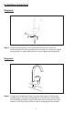Installation Instructions Diagram 3 1 2 Step 2: Attach both water hoses to the faucet by screwing them into the two internal ports located inside the base of the faucet. The red/blue indicator on the side of the handle illustrates the hot water hose (red - 1) is attached to the left port while the cold water hose (blue -2) is attached to the right port. Diagram 4 2 1 Step 3: Attach the shank (1) and base (2) and proceed to install the faucet through the deck mounting hole.
