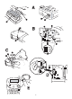 Fig. 2 Note: Please use the AC Adaptor to re-charge your battery pack and press the power-on key to activate the charging. 3. Installing/Changing the cassette • Press catch in and open access door (fig B1). • Hold cassette as shown, then lift cassette B2 straight up and out. • Ensure tape and ribbon B3 are taut across mouth of cassette and tape passes between guideposts before installing as shown. If necessary, turn spool B4 clockwise to tighten ribbon.