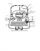 AC Power Connector LCD Display Tape Exit Font Key Styles/Fixed Length Key Box/Align Key Power Cutter Key Settings Key Memory Key Symbols Key Extra Key Print Key Cancel Key , Tab Key CAPS Key Arrow Keys with OK Key Backspace/ Clear Key .