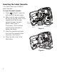 Inserting the Label Cassette Your label maker uses DYMO D1 label cassettes. To insert the label cassette 1 Press and pull to open the side cover of the label maker. 2 Make sure the tape and ribbon are taut across the mouth of the cassette and that the tape passes between the label guides. See Figure 3. If necessary, turn the ribbon rewind spool clockwise to tighten the ribbon.