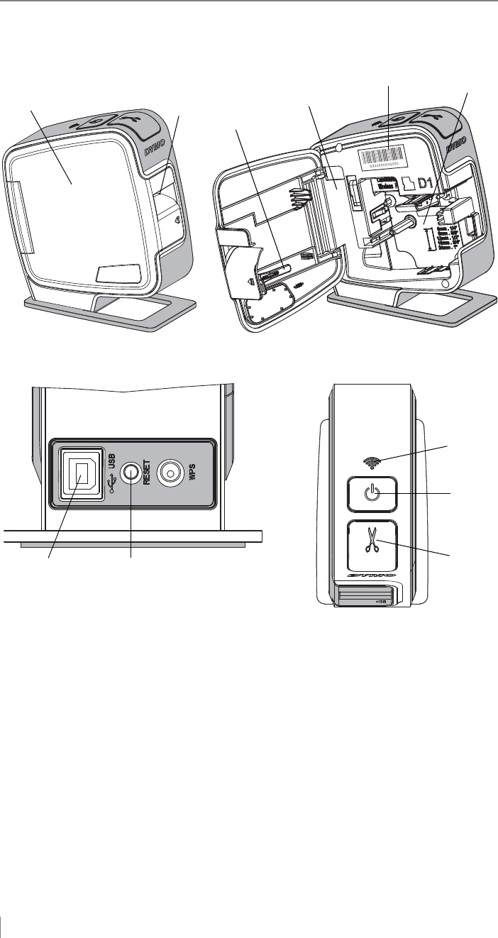 2 Label exit slot 6 Label compartment 10 Power button/status light