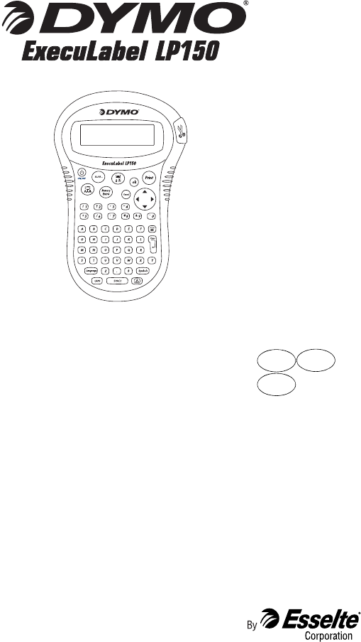 About Your New Labelmaker With your DYMO ExecuLabel™ LP150 labelmaker, you can create a wide variety of high-quality, selfadhesive labels. You can choose to print your labels in many different sizes and styles. The labelmaker uses DYMO D1 label cassettes in widths of 3/8” (9 mm ) and 1/2” (12 mm). Label cassettes are also available in a wide range of colors. Visit www.dymo.com for information on obtaining labels and accessories for your labelmaker.
