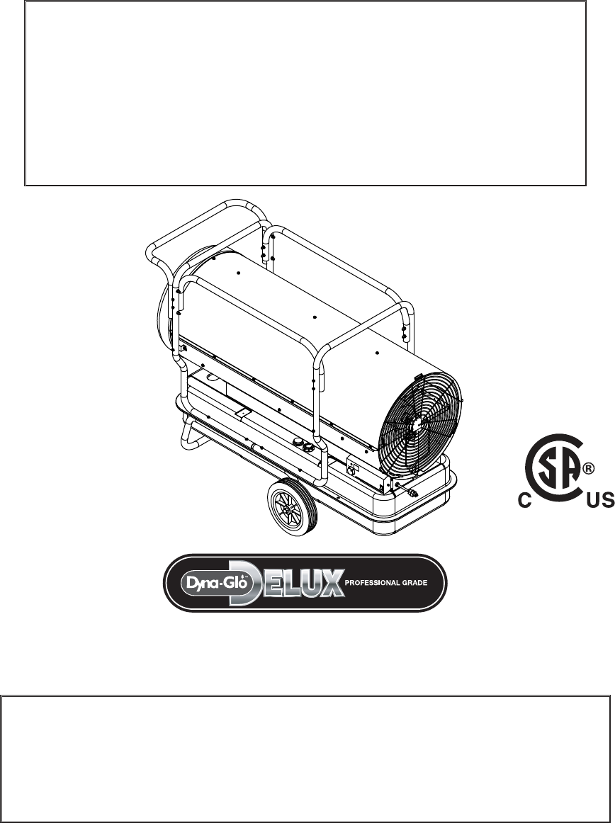 INDOOR/OUTDOOR PRODUCTS KEROSENE PORTABLE FORCED AIR HEATERS “USER’S MANUAL AND OPERATING INSTRUCTIONS” COMPLIES WITH ANSI A10.10-1998 CAN/CSA/B140.0-03 AND CSA B140.8-1967 MODEL : KFA650DGD Before the first use of this heater, please read this USER’S MANUAL very carefully. This USER’S MANUAL has been designed to instruct you as to the proper manner in which to assemble, maintain, store, and most importantly, how to operate the heater in a safe and efficient manner.